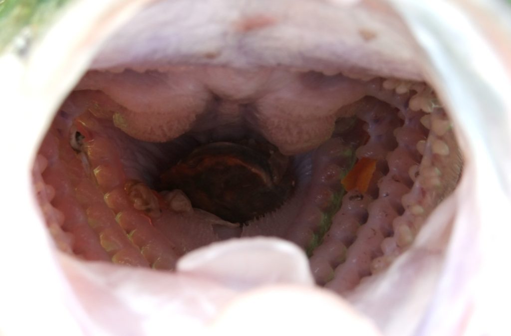 Prebacio sam se na površince i taman sam prolazio desetak metara od obale kad sam uočio sramežljiv kolobar u samoj podlokanoj obali s koje se trava spuštala u more. Bacio sam varalicu na metar od kolobara i taman počeo šetati Dog-X JR kad se pojavila brazda po površini direktno na varalicu. Pljusak i jak udarac, ali bez realizacije. Ponavljam zabačaj i mališan od 250-300 g pogađa isprve, i to tako da mu je prsna trokuka završila u škrgama! Kako?! To isto sam se pitao i bezbroj puta ranije kad mi velika pastrva s onolikim ustima lupi, promaši ili spadne, a ona malena od jedva pedlja isprva spakira cijelu trokuku Meppsa trojke i zapečati si sudbinu. Nesretnog brancinića sam izvukao za škrgu koja je pokidana virila iz usta, pažljivo oslobodio udice i spremio u čuvaricu – ako preživi idućih pola sata ide nazad. Nažalost, nije izdržao dugo…