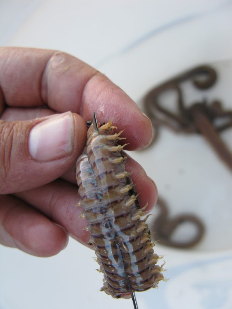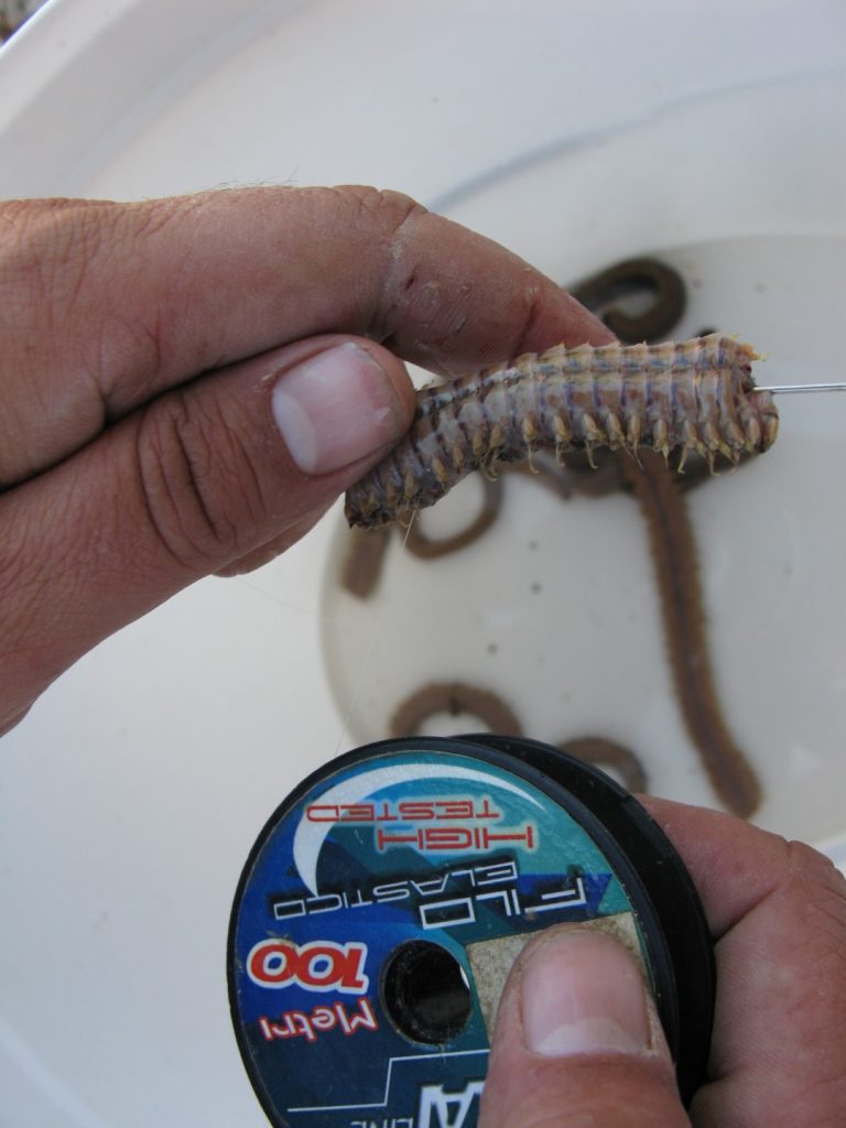 Ovdje nema mnogo rasprave, veliki morski crv je mamac broj 1. U noćnom ribolovu on je nezamjenjiv jer pomicanjem svojih nožica on se presijava u fluorescentnim bojama što ribu dovodi do ludila. Najbolji je svakako živi svježi crv no poslužiti će i usoljeni u nedostatku svježega. Jedini je problem što crva i sve ostale ribe vole tako da ukoliko ga pronađu batoglavci, bukve ili ušate, ribolov se svede na prečesto prezabacivanje pribora, što za fratra i nije baš najbolje. Stoga je crva dobro malo učvrstiti pomoću elastičnog konca. Osobno volim koristiti veće komade crva recimo od 5 do 7 cm tako ako ga i malo pogrickaju sitnije ribe uvijek ima dovoljno mamca da primami velikog fratra.