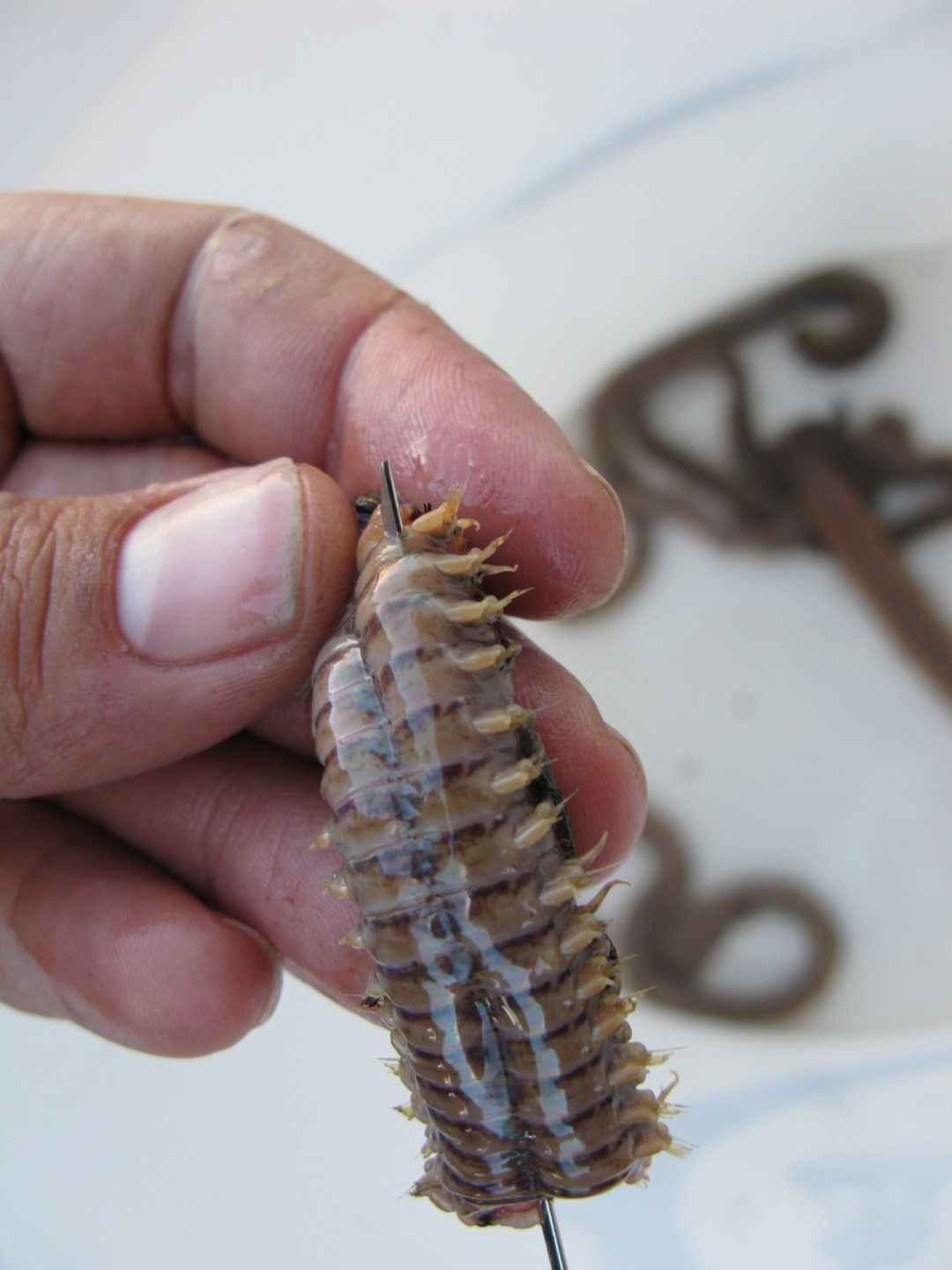 Ovdje nema mnogo rasprave, veliki morski crv je mamac broj 1. U noćnom ribolovu on je nezamjenjiv jer pomicanjem svojih nožica on se presijava u fluorescentnim bojama što ribu dovodi do ludila. Najbolji je svakako živi svježi crv no poslužiti će i usoljeni u nedostatku svježega. Jedini je problem što crva i sve ostale ribe vole tako da ukoliko ga pronađu batoglavci, bukve ili ušate, ribolov se svede na prečesto prezabacivanje pribora, što za fratra i nije baš najbolje. Stoga je crva dobro malo učvrstiti pomoću elastičnog konca. Osobno volim koristiti veće komade crva recimo od 5 do 7 cm tako ako ga i malo pogrickaju sitnije ribe uvijek ima dovoljno mamca da primami velikog fratra.