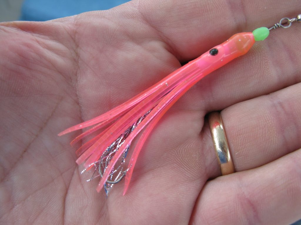 Uvijek lovim sa dvije panule i za taj način lova najpraktičniji su štapovi dužine 2.5 m akcije A ili B i težine bacanja do 100 g. Od rola koristim veličine 4000 do 6000 ovisno o tome da li se želim sa ribom “igrati” ili što prije dovući do plovila. No to i nije tako važno. Štap i rola koju imate poslužit će. Ovo što je nakon odabira debljine najlona važno je izbor modela, veličine i boje same varalice. Na krutim varalicama-teturavcima ne može se i ne smije ništa dodavati jer to najčešće rezultira okretanjem same varalice i uvrtanjem najlona. To je i jedan od odlučujućih faktora koji su bili presudni u mom izboru varalice, te sam zadnjih 20-ak godina postao vjeran tom famoznom materijalu-silikonu. Veliki izbor boja i modela ostavljaju ribolovcu koji posjeduje minimum mašte i slobodnog vremena puno prostora za izradu svojih malih umjetničkih djela.