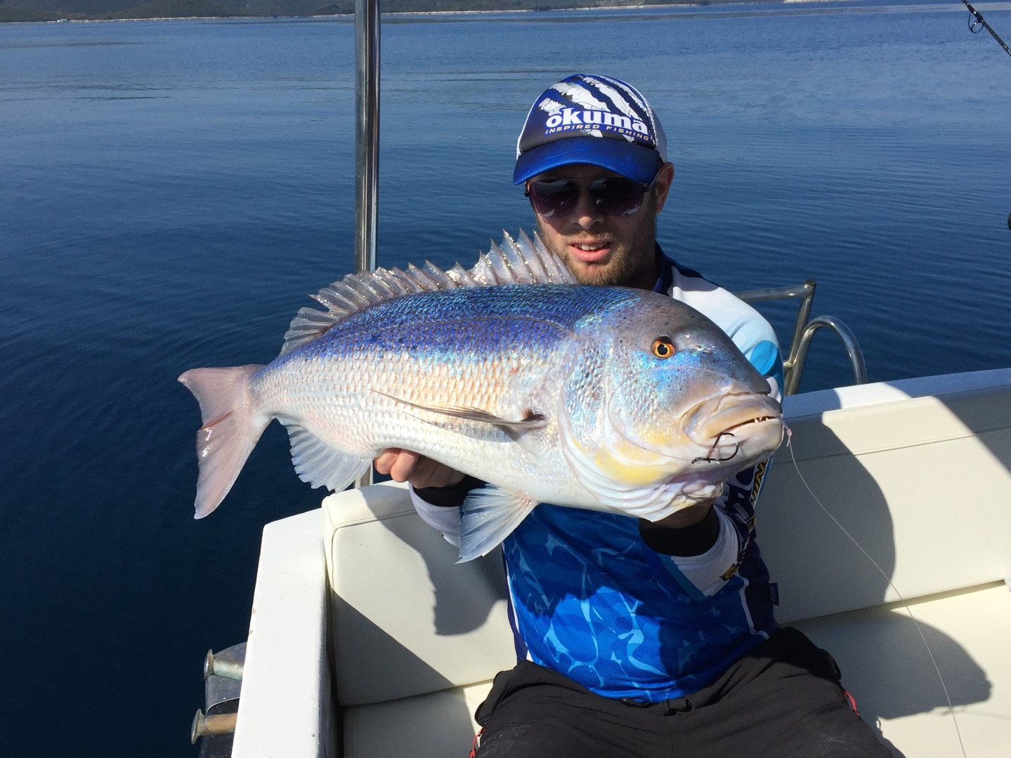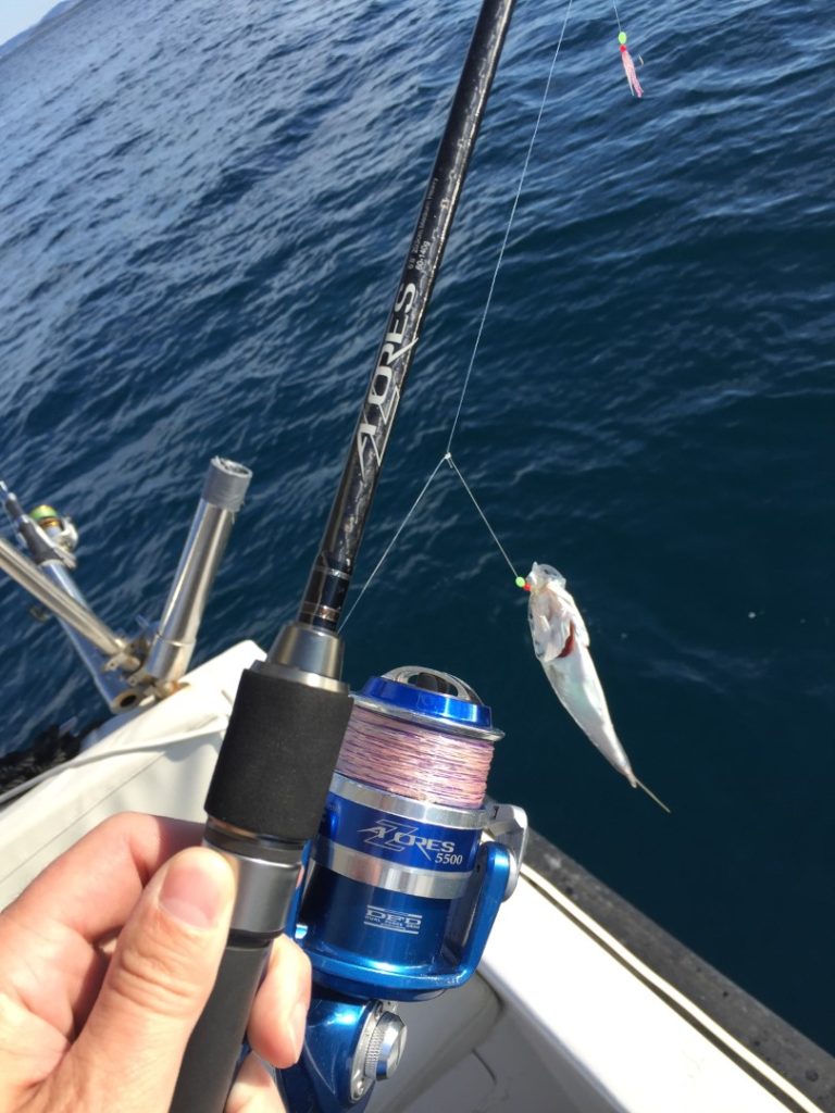 Dobro je zagucao pa mu je moja kontra sigurno smjestila Ownericu u kut usana. Za razliku od običnog zubaca, krunaš se puno duže bori, često do samog vrha. Zubatac je malo jači u prvim sekundama, ali brzo sagori energiju, ali zato krunaš ima force na duže staze. Guštam u fajtu do same površine, a onda uživamo u njegovim bojama. Riba od skoro 3,5 kg nam je uveselila dan, isplatilo se riskirati vožnjom u kulf. Izmjenjivali smo se na štapu i tako u sljedecih 15-20 minuta digli još tri komada, sve ribe od 1,8-3,5 kg. Zadnji od oko 2,5 kg je bio za krštenje novog štap za inchiku, Okuma Azores Slow Jig duljine 203 cm i gramaže 60-140 g. Iako je to štap za inchiku, nisam izdržao da s njim ne spustim panulu, s rolom okuma Azores Blue 5500 koja se od prošlog ljeta otkad sam ju nabavio „napila krvi“ krunašima pošteno, a odradila je i velikog gofa. Teški gušt s laganim priborom, štap se cijeli savija, a savijen ima dosta snage, milina, baš za igranje. Krunaši su napadali lignje jednako kao i totnje, bez razlike u učinkovitosti. Odvažan potez da ovoliko potegnemo u kulf i početkom ljeta tražimo krunaše na velikoj dubini se isplatio; da se nismo prilagodili nego da smo robovali klasičnom plitkom lovu običnog zubaca vjerojatno taj dan ne bismo digli ništa.