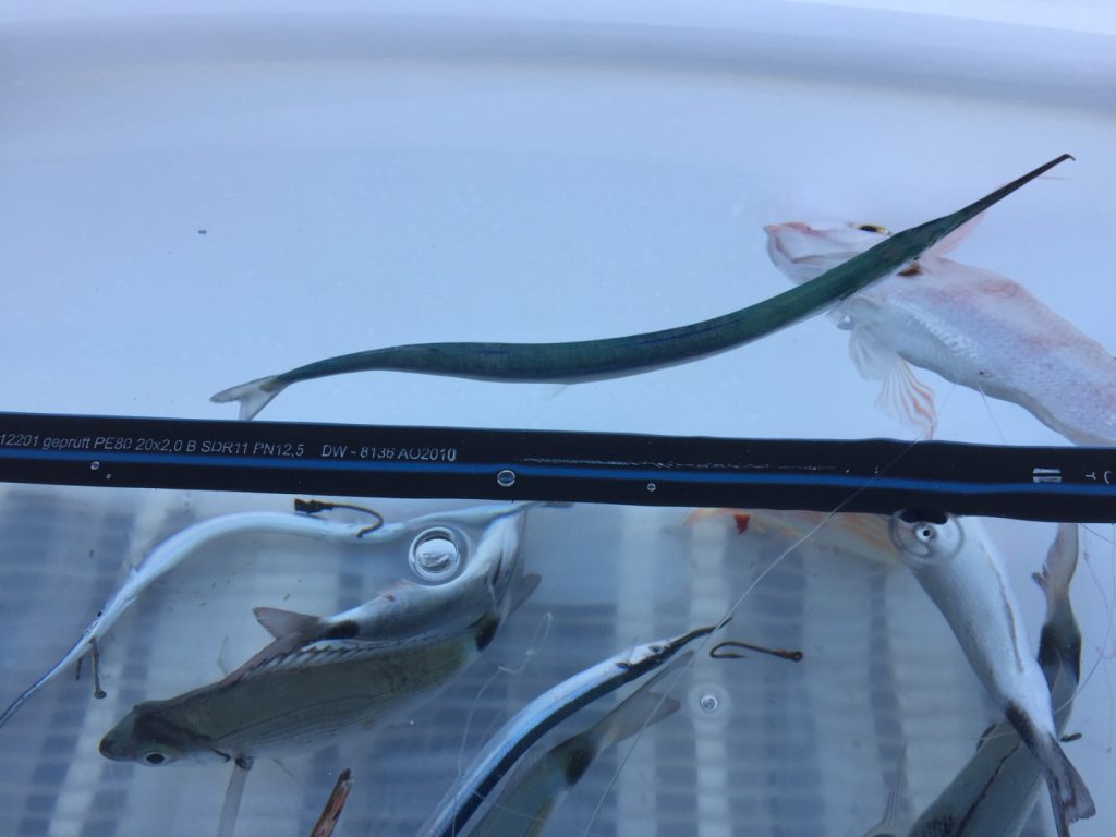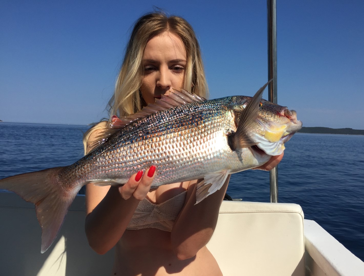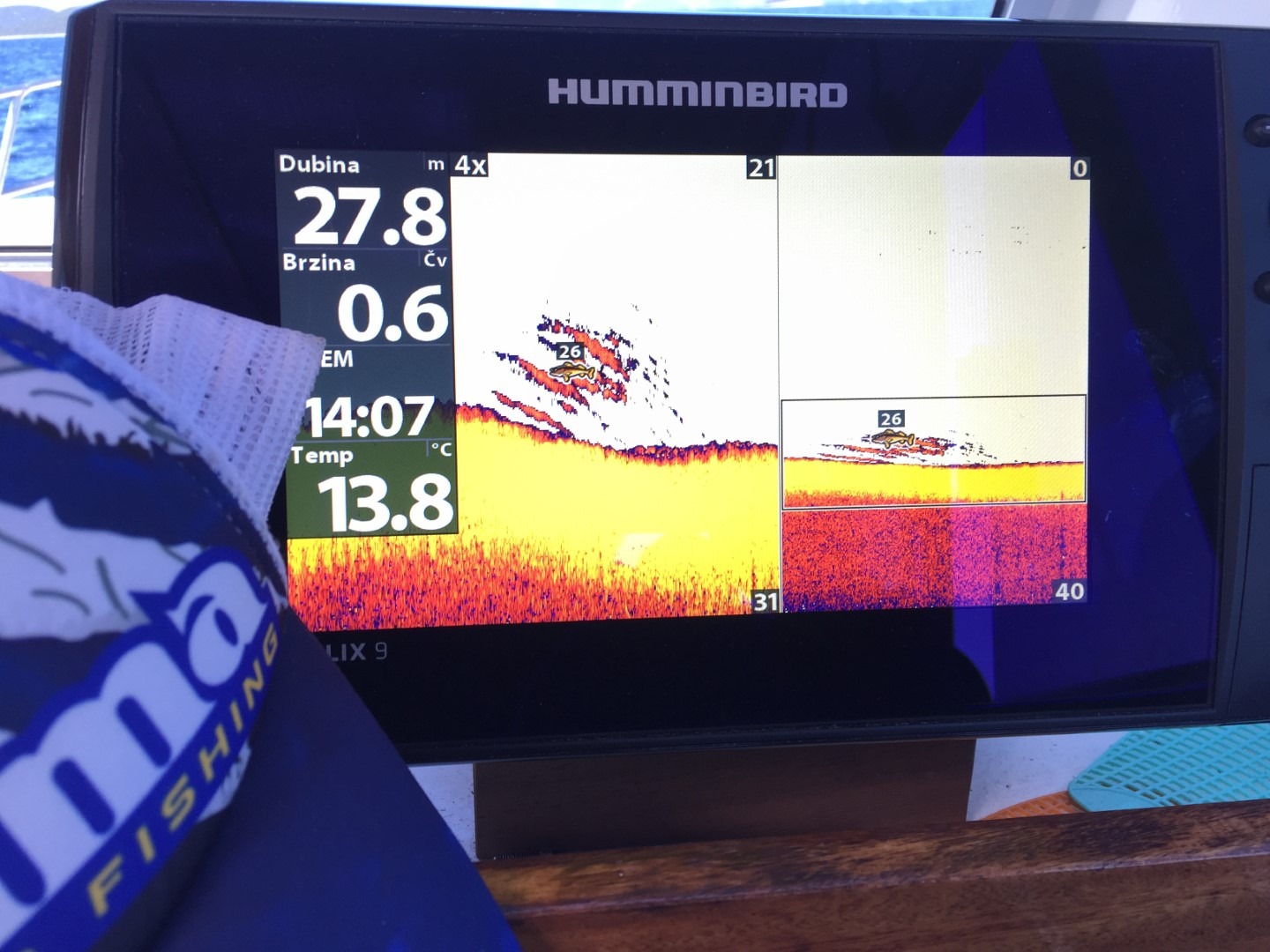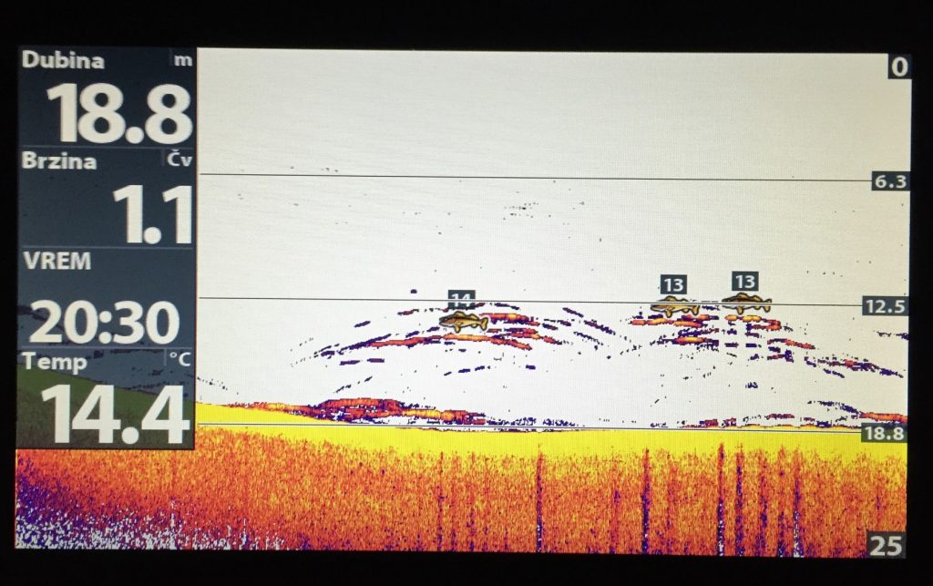 More je skroz ugrijalo, izrazio se termoklin na 10-20 metara (kako gdje), plićaci bujaju životom, imamo dojam da se sav život u moru preselio u obalni pojas plići od 30 metara. Sonder svugdje u opisanom pojasu crta ribe kao lud, kad gledamo po valama puno je bugvi, gavuna, manula, ušata, fratara, svega. Ljeto je, riba igra, u moru je jako živo, ispod vas veli predatori, ali ne grizu, nešto ne valja. Na kraju vas ubija vrućina i bonaca, nespavanje zbog predugačkog dana i prekratke noći, elan skroz pada…