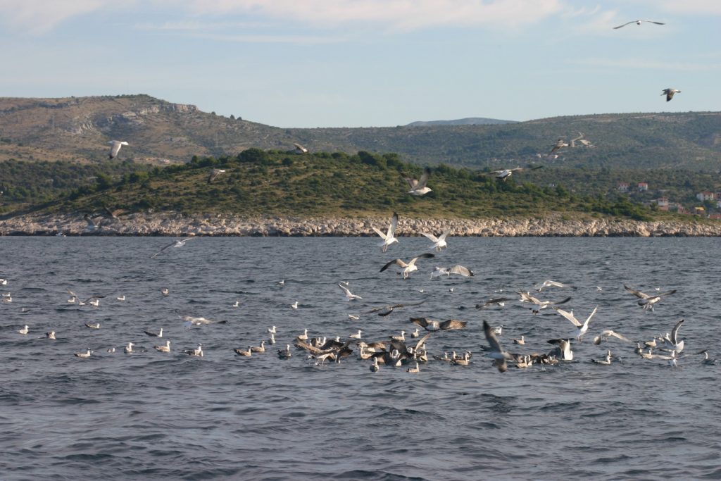 U lovu pučinske plave ribe, praćenje ponašanja galebova i ostalih ptica od velike je važnosti. Iz ponašanja galebova treba isčitati, što to on vidi i koje su njegove namjere. Pokušavajući ih pratiti bez nekih osnovnih saznanja o njihovu ponašanju, možete danima glavinjati pučinom bez uspjeha.