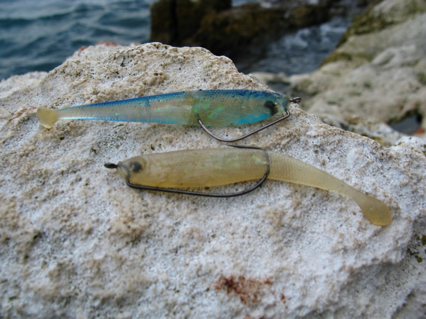 Prvo ću vam predstaviti silikonce jer u Rovinju imam izrazito bistro more i silikonci su najrealističnija imitacija koju brancini najviše „puše“, stoga im dajem laganu prednost pred voblerima.