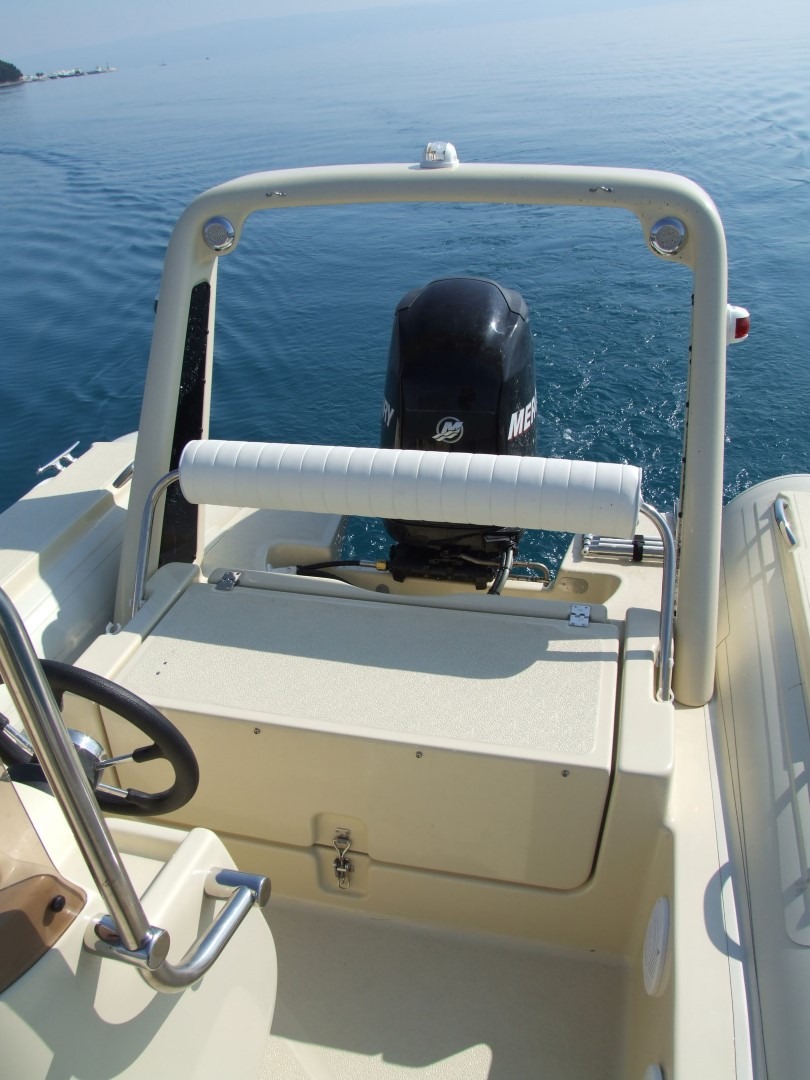 A sad se treba vratiti na podatke koji su zanimali ekipu iz Hrvatskog registra brodova, primjerice na mogućnost smještaja osam osoba. Naime, nije dovoljno napraviti plovilo koje će svojom prostornošću i nosivošću omogućiti ukrcaj toliko ljudi, potrebno im je svima dati mogućnost da se tijekom plovidbe pridržavaju za neki rukohvat. I da, ukoliko želite registraciju za osam osoba, svaka od njih bi trebala moći sjesti na nešto čvrsto, a ne na gumene bokove. Treba li uopće spominjati kako je Barracuda 530 ovo položila bez zamjerki? I test držanja mora u zaokretu je prošao u istom tonu: tubusi su odrađivali točno ono za što su namijenjeni – stabilizaciju. Uglavnom, da ne duljim, Barracuda 530 je dobila pozitivnu ocjenu i dozvolu za upis u registar. Tome je svakako pripomoglo i neznatno naginjanje kada joj se bokovi maksimalno opterete dok stoji. Isto kao i samoprazneći kokpit, za svaki slučaj dodatno osiguran kaljužnom pumpom. A ovaj gumenjak stvarno nije lako nakrcati morem, čak i kad se trudite.