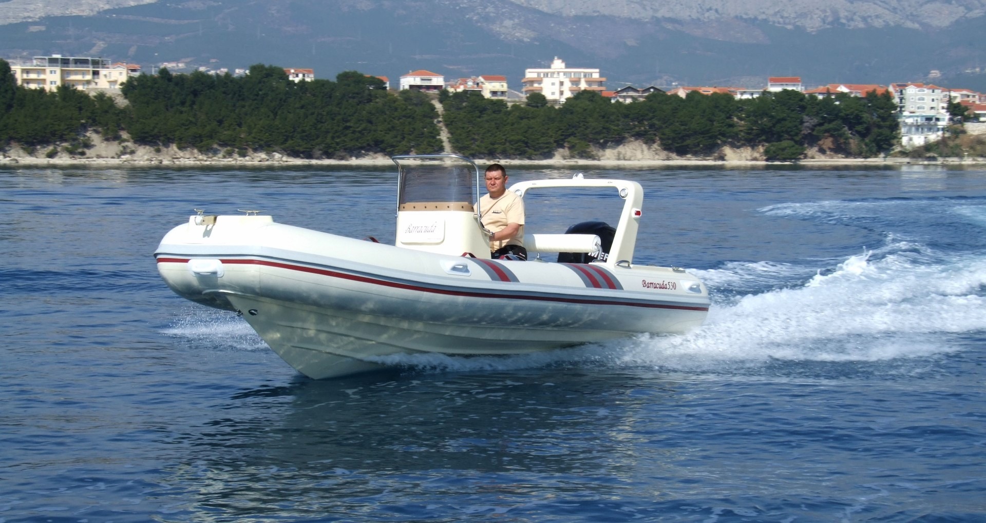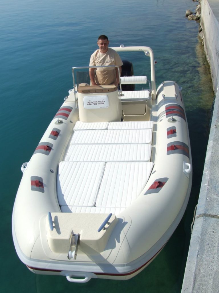 Plovili smo brzinom od dvadeset čvorova, a onda sam stisnuo ručicu gasa do kraja, usput se malo pozabavivši trimanjem. Premda sam očekivao brzi odgovor trupa Barracude 530 na tu radnju, ipak sam ostao poprilično zatečen brzinom kojom smo stigli do 42 čvora. Ajde, neka je i ta napravica malo lagala, možda je u igri i bio koji čvor manje. Ali svejedno, fascinantno je kada u pet sekundi pređeš iz laganog cruisinga u jurnjavu u kojoj ne možeš zaustaviti suze u očima. Prekrasan završetak prekrasnog dana, no za bolje upoznavanje s ovim gumenjakom treba se vratiti par sati unatrag, kada je na njega sjela ekipa iz Hrvatskog registra brodova. Ili, još bolje, nekoliko mjeseci unatrag, na trenutak kada me je Danijel Petrak, poznatiji kao Danijel Barracuda, obavijestio da priprema novi model…