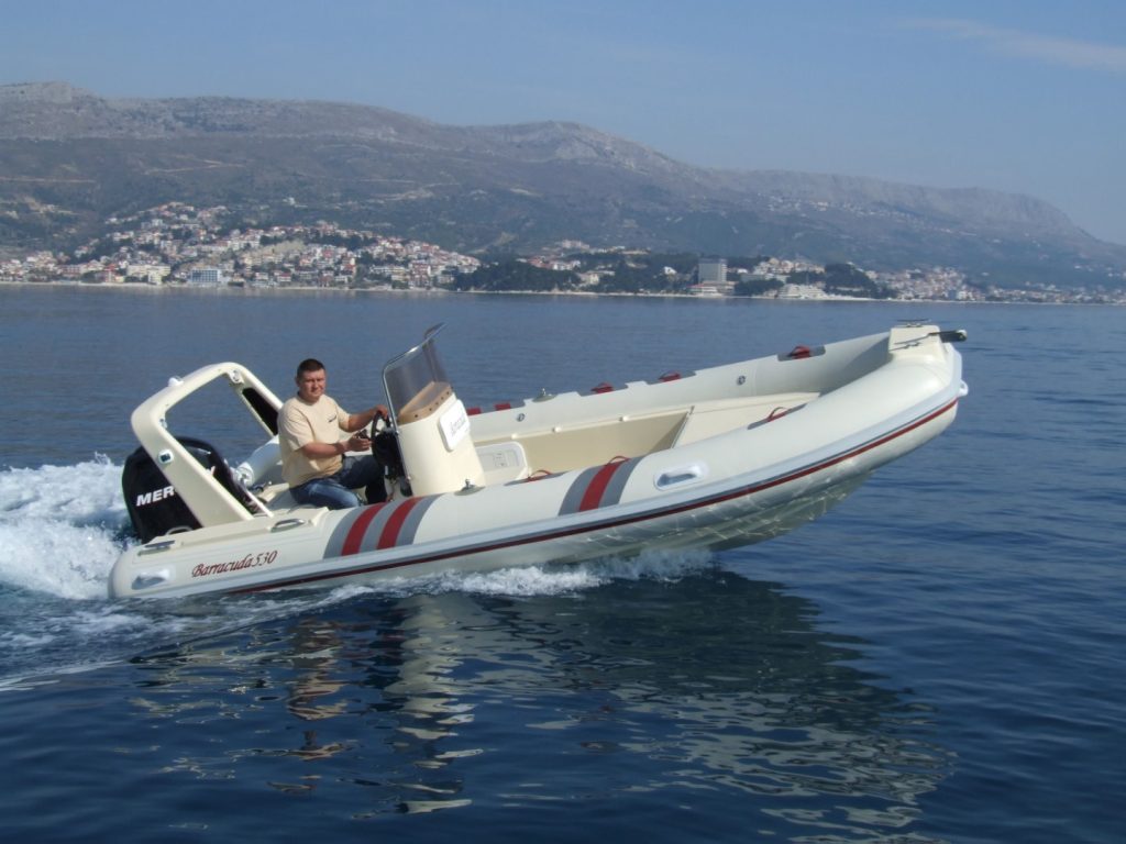 Naime, Danijel je, prateći reakcije potencijalnih kupaca na postojeće modele u gami Barracuda brodova, uočio kako između modela 470 i 590 postoji praznina. Koliko u centimetrima, toliko i u koncepciji. Zato je prionuo razradi ideje o gumenjaku koji će zadržati jednostavnost manjeg modela, a zadržati nešto od luksuza većeg modela. Naravno, istovremeno je pazio na to da podvodni dio trupa mora biti takav da omogući glisiranje s motorom manje snage. Dostignutih 42 čvora s motorom od 90 ks na krmi najbolje svjedoči o realizaciji te ideje. Znači, za normalno korištenje Barracude 530 dostatna je i „konjica“ od 75 ks (pa čak i 60), što neće opustošiti novčanik ni u nabavci, a ni pri kasnijem korištenju gumenjaka. Kako projektna dokumentacija, a i kvaliteta gradbenog materijala, dopušta montažu čak 150 ks na krmi, jasno je kako se Barracuda 530 može pretvoriti u jurilicu koja će prašiti preko 50 čvorova. Iskreno, meni se to čini malo pretjerano, ali tko voli, nek’ izvoli. Moguće je! Da ja kupujem Barracudu 530, odlučio bih se baš na 90 ks. Ili, eventualno, na 115 ks kako bi se ostavila neka rezerva snage u slučajevima većeg opterećenja.