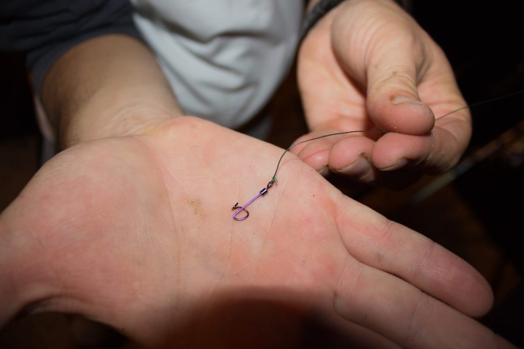 Dagnja se te večeri pokazala boljom ješkom. Vrlo je bitno da je svježa i netom prije ješkanja očišćena. Za učvršavanje smo koristili silikonski konac koji je neizbježan prilikom velikih zabačaja. Ono što je po meni najvažnije u ovakvom ribolovu je dobro prilagođen predvez. Koristili smo predveze sa dvije udice dužine od jednog metra. Za osnovni najlon koristili smo 0,35 mm Colmicov Fendreel te za udice po meni neizostavni Seaguarov FXR pomjera 0,21. Udice smo koristili optimalne veličine za takvu lovinu br. 4 Sasame Yamame black nickel. Što se tiče olova kretali smo se od 100 do 150 grama, ovisno o vjetru i kurentu. Riba noću nešto sporije uzima ješku jer nije pod pritiskom sitne ribe tako da joj treba dati i koji trenutak više prije nego se odlučite na kontru.