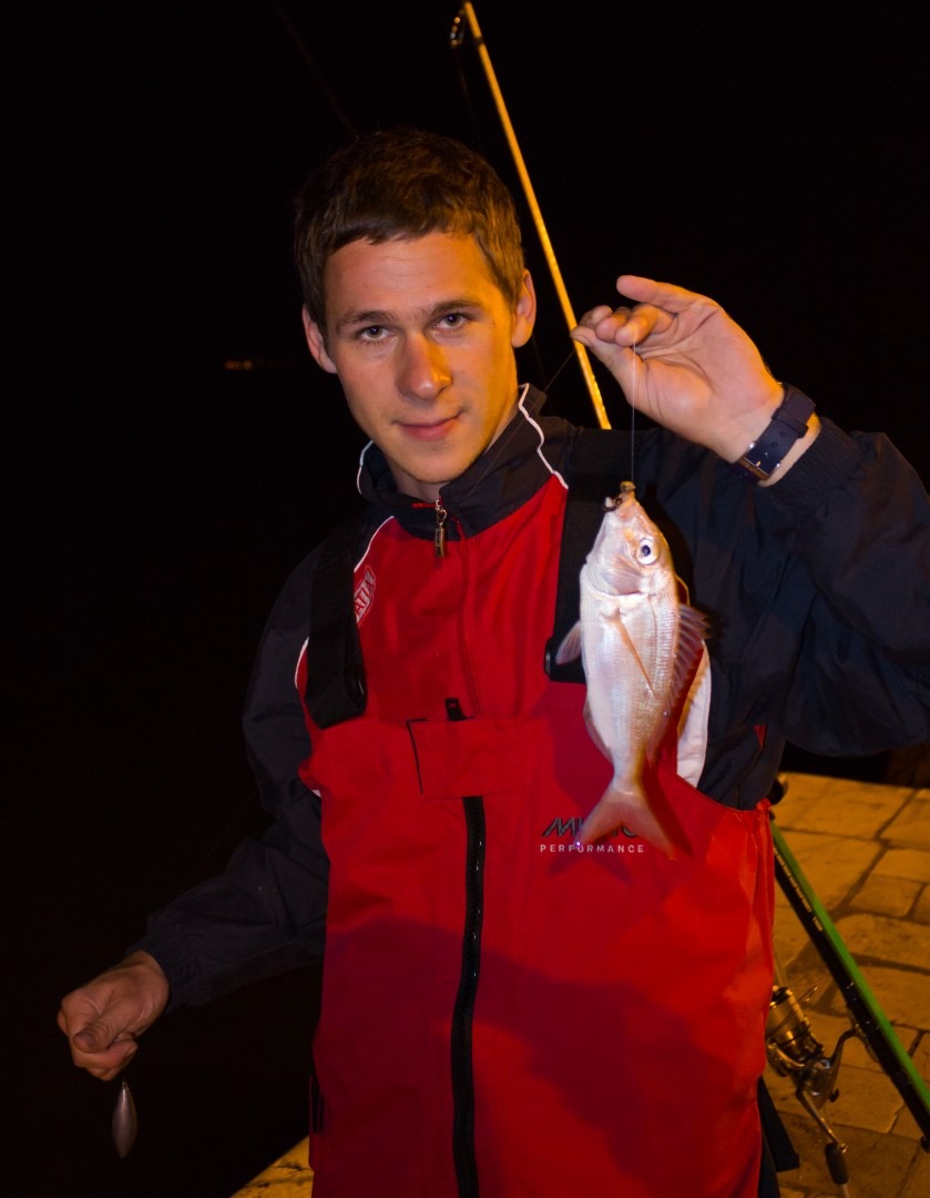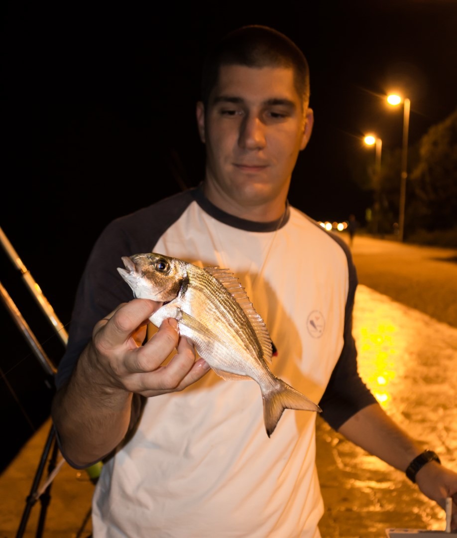 Lov sa obale svakako je drugačija tehnika od ribolova sa brodice jer zahtijeva konstantno zabacivanje koje se nekad čini i presudnim. Osobno jedan od dražih ribolova sa obale mi je upravo noću. Zajedno sa gore intervjuiranim ribolovcem Ninom Jukićem odradio sam trening sa zadarske rive. Ono što lov noću čini drugačijim od lova po danu je smanjena koncentracija sitne ribe koja najčešće samo pojede ješku. Noć je svakako i neizostavna za lov nekih “noćnih ptica“ poput: fratara, ovčica, orada, ugora i drugih. Na zadarskoj rivi gotovo da nećete uloviti fratra po danu, ako se i ulovi, to su primjerci od nekih 15-ak centimetara. Sačekali smo da se smrači kako bi izbjegli neumorne šetače po rivi. Za ješku smo koristili dagnju, koja nam je i ujedno i glavna ješka, te crva. U startu smo se opredijelili za tehniku sa dalekim zabačajima od preko 100 metara.