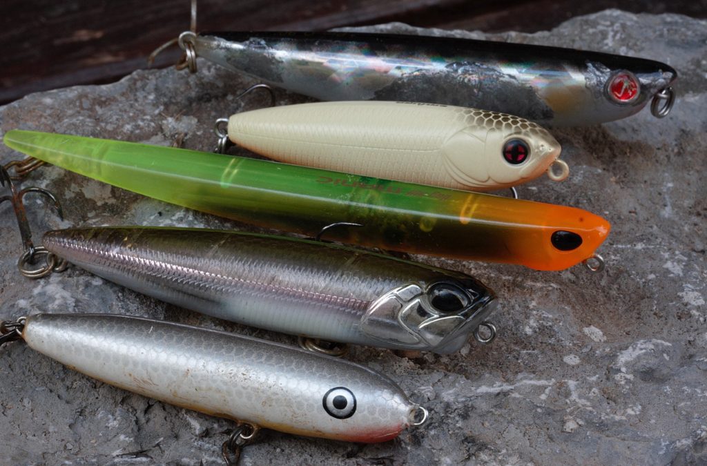 Početci varaličarenja na Jadranu uglavnom su vezani za takozvanu laku panulu. Prema pričama, iako ribari uglavnom taje svoje pošte i mamce na koje love, najčešće korištene varalice na panuli bile su silikonac Raglou i maleni vobler Yozuri Pins koji savršeno imitira gavuna. Upravo na Pins-a i mi žabari sa kopna ulovili smo svoje prve brancine sa obale. U vrijeme kada je sinonim za voblere bila Rapala, uspješno su korišteni Original i Countdown vobleri u veličinama od 5 – 11 cm, a svo iskustvo skupljeno u ribolovu smuđa prakticirali smo manje ili više uspješno na brancinima. Ipak, brancini su često bili neuhvatljivi. Pravi preporodi poboljšanje rezultata dogodilo se promjenom pristupa i izlaskom na površinu, tj. korištenjem top water modela. U tom segmentu varaličarenja, ribolov brancina više nalikuje ribolovu bolena nego smuđa, a usputni ulovi su lice i strijelke. Raznorazne verzije plivajućih i tonućih “Zara” te ostalih “walk the dog” površinskih modela vođene na samoj površini mora, u određenim uvjetima pokazale su se učinkovitima. Razlog je taj što tijekom hranjenja brancin često tjera gavune na površinu prije nego im presudi, a i mali cipli upravo na taj način plivaju po površini. Uostalom brancin teže primjećuje prijevaru ako se varalica vodi po samoj površini. Najviše grizova slijedi u pauzi, nekad je bolje brže vođenje, dok je ponekad dobro i usporiti, sve prema vlastitom osjećaju i situaciji na moru. U osobni izbor površinskih voblera uvrstio bih Heddon ili razne handmade verzije “Zara”, Duo Lures Bay Ruf Manic koji je jedan od najpopularnijih top water voblera za brancina u Japanu, Duo Lures Pencil 85, Seaspin Pro Q od 9 cm, Savagear Top Prey, Sakura Naja, ili neki od Megabass top water modela. Ti modeli pokazali su se posebno učinkovitima u plitkim zaljevima, kada je zbog trave i pličine teško vuči vobler sa kljunom, a takvi muljeviti i zatravljeni zaljevi obično su top lokacije za brancine i manje lice.