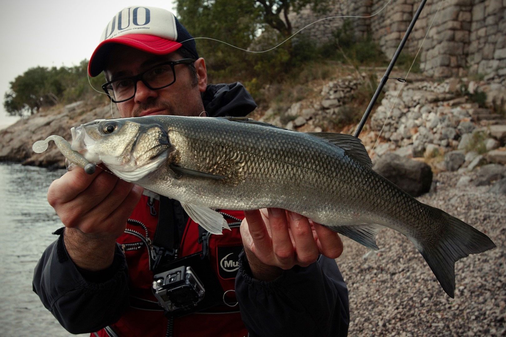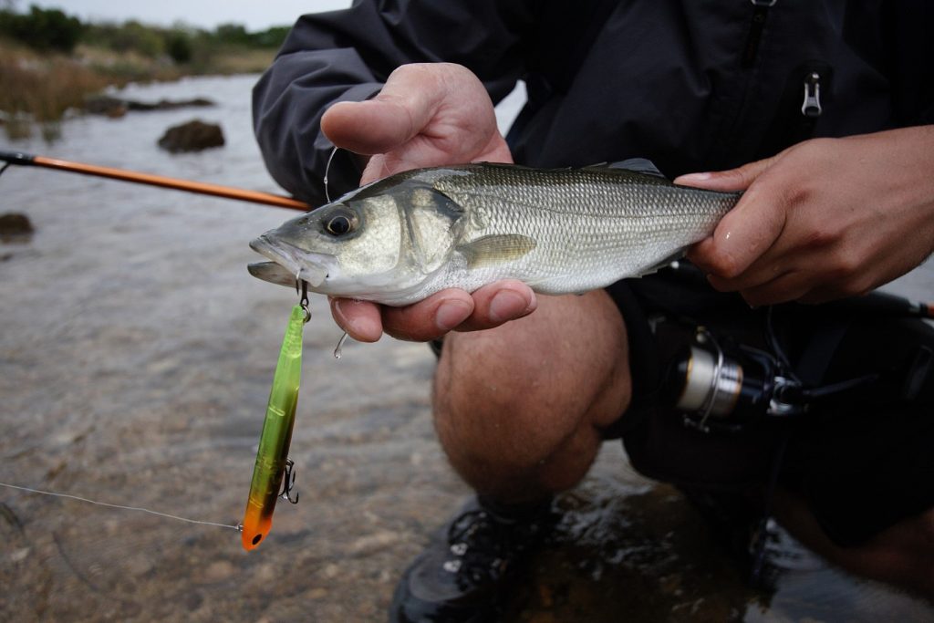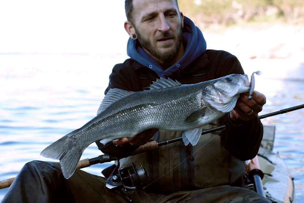 Osim plićaka, odlična mjesta za ribolov su ušća rijeka i potoka, izvori vrulja i tjesnaci sa jakim protokom mora. Tu more može biti i nešto dublje, a zbog vodene struje vrijede neka druga pravila. Iako se i ovdje može uspješno loviti površincima, najbolje je spustiti varalicu skroz do dna. Do pola vode možemo doći i sa nekim od tonućih modela voblera, no jedino sa silikoncem na dovoljno teškoj glavi možemo se probiti do dna. Postoje razni modeli silikonaca koji uspješno love brancine, no Sakura Slit Shad nam je ove godine totalno pomutio pamet. U samo tri ribolova na Slit Shadove u veličinama 7,5 cm i 8,5 cm i bojama Sexy Shad, Blue Back i Ghost White, Crni i ja smo ulovili jednu oradu i 10 brancina. Najveći brancini kretali su se u rasponu od 1 – 2,4 kg, a Crni je na Savagear silikonac sa integriranim otežanjem i udicom tjedan dana ranije ulovio jednog od 3,2 kg, što je dokaz da se i veće ribe mogu uspješno loviti varalicom. Osim izbora varalice i prave pozicije, važno je pogoditi i pravi period hranjenja, a on se često poklapa sa vrhom plimnog vala. Najbolje nam se pokazao period u samo svitanje u kojem noć prelazi u dan, ali se još uvijek nije potpuno razdanilo. Što se tiče vjetra uvijek je bolje da puše i da je more valovito nego potpuno mirno. Jugo poslovično slovi kao dobar vjetar za varaličarenje uz obalu, jer valovi udaraju u obalu i u takvim uvjetima brancin i ostali predatori lakše ulove plijen. Dan sa jakim jugom i kišom mogao bi vam biti dan za pamćenje. Posebno ako su pritoke i vrulje u priobalju u laganom porastu i lagano počinju mutiti more. To je trenutak u kojem trebate biti na omiljenoj poziciji i kada možete naplatiti sve frustracije koje ste nakupili tijekom brojnih ribolova po bistrom vremenu bez uspjeha. Takvo vrijeme traži od ribolovca da bude adekvatno obučen, pa uz obaveznu kabanicu dobro dođu i dugačke čizme. Pravilno obučeni sigurni ste od prskanja valova i kiše koja vam brzo može pokvariti raspoloženje.