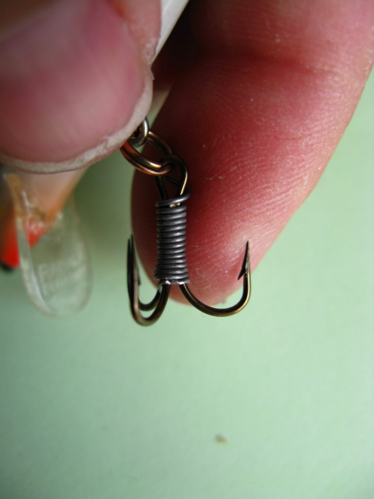 Mali plivajući vobleri, po mogućnosti drveni i bez zvečkica, moj su omiljeni izbor u ovo vrijeme. Kuglica samo narušava spokoj i atmosferu koja sad vlada u vodi, kao pijani punker na koncertu klasične glazbe. Odaberite male voblere, iz razloga što se bassevi odmaraju i ne jede im se baš, „ali kikiriki bi još mogel jedan…“. Odlični su Rapalini originali i Shad Rapovi plitkoronci od 5 cm, Monarch Dok Nemo, Zander i Vera, u duljinama od oko 5 cm, razni ručni radovi znanih i neznanih majstora, jednodijelni i dvodijelni. Štos je da nas bass ne skuži (najbolje je ako mu dođemo s leđa) i da mu zabacimo relativno blizu glave, manje od pola metra, te jednom naglije cimnemo da varka zaroni, malo prodrma i ispliva. U većini slučajeva, ako smo varalicu dovoljno blizu navukli bassu na usta, on će zagristi. Borba je obično kraća nego kasnije na ljeto i nije toliko spektakularna, jer u većini slučajeva izostane ono karakteristično iskakanje iz vode, no ribe su velike i debele tako da se to iskompenzira. Sada prije mrijesta je pravo vrijeme da ulovite svoj osobni rekord, a možda i srušite moj! Boja voblera ne igra toliko ulogu koliko je važno da nema kuglice, ali uvijek u potpuno prozirnoj vodi preferiram prirodnije nijanse, a u mutnijoj neku od signalnih boja FT, SFC i GFR (po Rapalinoj nomenklaturi). Ima genijalnih varalica koje malo prenaglo isplivavaju za moj ukus, ali malim trikom možemo i tome doskočiti. Jednostavno na prednju trokuku namotamo malo olovne žice. Ili ako posjedujemo stare originalne Stormove Suspending Thundersticke (a koji to špiner koji drži do sebe nema bar 5 komada!), u njihovim kutijama imaju olovne naljepnice, tzv. Suspend Dots, koje su služile za fino tjuniranje. Jednostavno na trbuh varalice koju želimo da sporije izranja „nakeljimo“ par naljepnica dok ne dobijemo željenu brzinu izranjanja. Jednako tako možemo i „smiriti“ rad nekih varki koje previše mlate repom, tako da im na rep „nakeljimo“ Suspend Dots i tako ga otežamo.