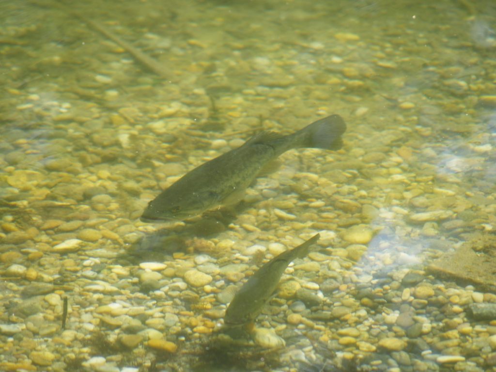 Neuvježbano oko će naravno najprije uočiti tamne mužjake i odmah će njih pokušati uloviti, a debela ženka (san svakoga od nas) će biti na vrijeme upozorena. Jako je dobro kad uočimo mužjake u vodi da se probamo smiriti i snimimo situaciju, te pogledom (kroz dobre polarizacijske naočale) pretražimo bližu okolicu. Često niti ne vidimo ribu, već samo crnu valovitu crtu, tako karakterističnu za bassa. Idealna varalica za ove uvjete je bass jig. Brzo potone na dno i odmah je u „zoni šuta“ pored debele ženke. To je vrlo važno jer da lovimo kao inače na neotežane silikonce, obavezno nam prije ženke uzme manji mužjak. Čak sam doživio više puta da se mužjak postavi između ženke i mamca i tako joj brani da dođe do njega. Tako da je bass jig idealan. Griz nikako nije silovit, nego je to više onako kao radi reda, „da se ne baci“. Zato volim na bass jigu malo „podšišati“ one grafitne štitnike jer ionako ne lovimo u najgušćoj trsci ili krošnji drveta, a događalo se da bass lakše ispljune nepodšišani jiig ili se teže zakači. Iz istog razloga preferiram i finnese ili „spider“ jigove, koji imaju tanju udicu od onih koji se koriste u kršu. S tim udicama imam puno veći postotak zakvačenih riba.