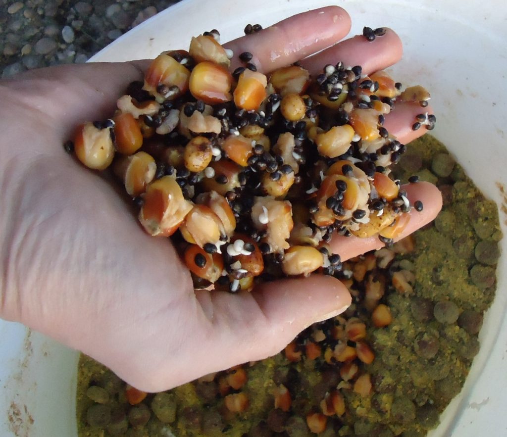 Nisam siguran da razumijem zbog čega se mamci uvijek moraju izvana aromatizirati samo tekućim pripravcima. Nekad je puno bolje na kantu boili istresti malo neke dobre dubinske hrane. Nakon klasičnog hranjenja i nakon pada tih mamaca u vodu, sitne čestice hrane će zajedno s njima na lovnoj poziciji napraviti veliki oblak koji će obično prvo privući sitnu ribu, a za njom će vrlo brzo doći i šarani. Zbog toga je moja omiljena taktika u proljetnom ribolovu kombinirati boile sa suhim koncentratom arome, dubinskom hranom, kuhanim kukuruzom i konopljom te peletama i kukuruzom šećercem. Ovako širok spektar mamaca teško da će nekog šarana ostaviti ravnodušnim. Međutim, sa samo jednom vrstom boili to baš nije uvijek tako.