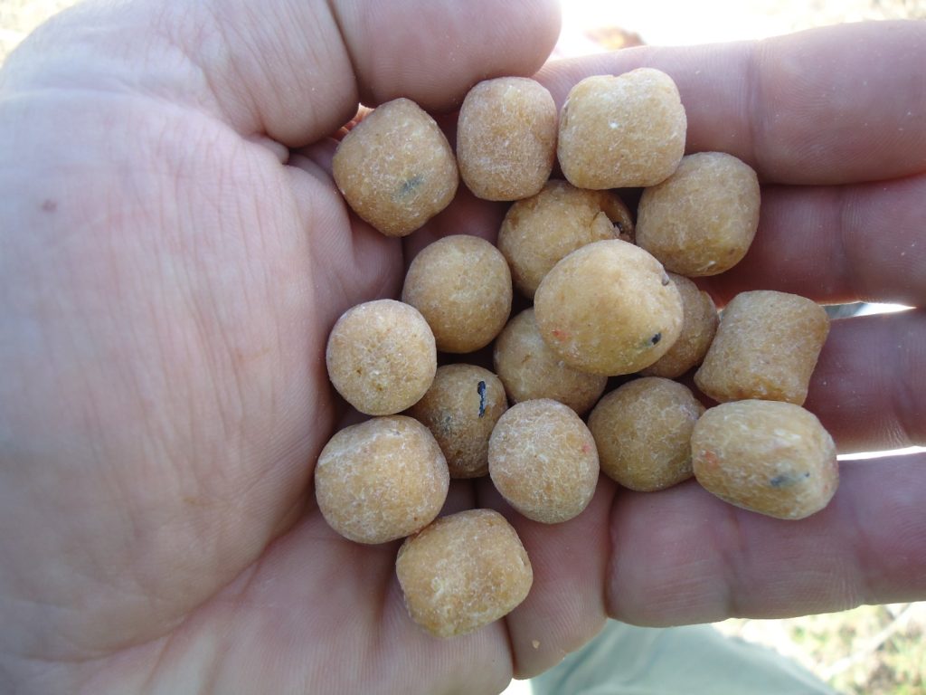 Kako je danas za svaki ozbiljan šaranski ribolov potrebna i ozbiljna priprema, Davor je veći dio izrade mamaca preuzeo na sebe. Napravio je po sedam kila dvije vrste boili: Essential Opal i Fusion od Mainlinea u različitim veličinama od 14 do 20 mm, te s istim smjesama u kombinaciji s Pop-Up Polaris smjesom napravio i male plivajuće boile. Namočio i skuhao dvije vrste partikla. U prvoj je kombinaciji pomiješao domaći kukuruz sa šećercem i u sve još dodao Multistim aditivom i Metamino aminokiselinama. U drugoj je opciji izmiješao hranu za golubove s konopljom, i sve dobro natopio s Active Ade Particle and Pellete sirupom, također od Mainlinea, tako da je izbor rastresitih mamaca jednostavno bio izvanredan – pravi švedski stol za šarane. Za ribolov smo još izabrali Pro Active Pelete Tutties i Bloodworm Extract Stick Pelete u kombinaciji s New Grange Response i High Impact Strawbery peletama od Mainlinea. Još smo tome dodali veliku vreću peleta različitih vrsta i promjera koju smo kupili kod Carpiste. Ja sam neposredno noć prije ribolova napravio oko 7 kilograma 14 mm vlastitih boili na bazi kazeina i brašna lignje, tek toliko da imam neku alternativu ako stvari krenu loše. Međutim, svi mamci su bili besprijekorno pripremljeni, i još je jedino trebalo izabrati dobru poziciju, dobro nahraniti i nadati se kako su šarani na Finzuli gladni.