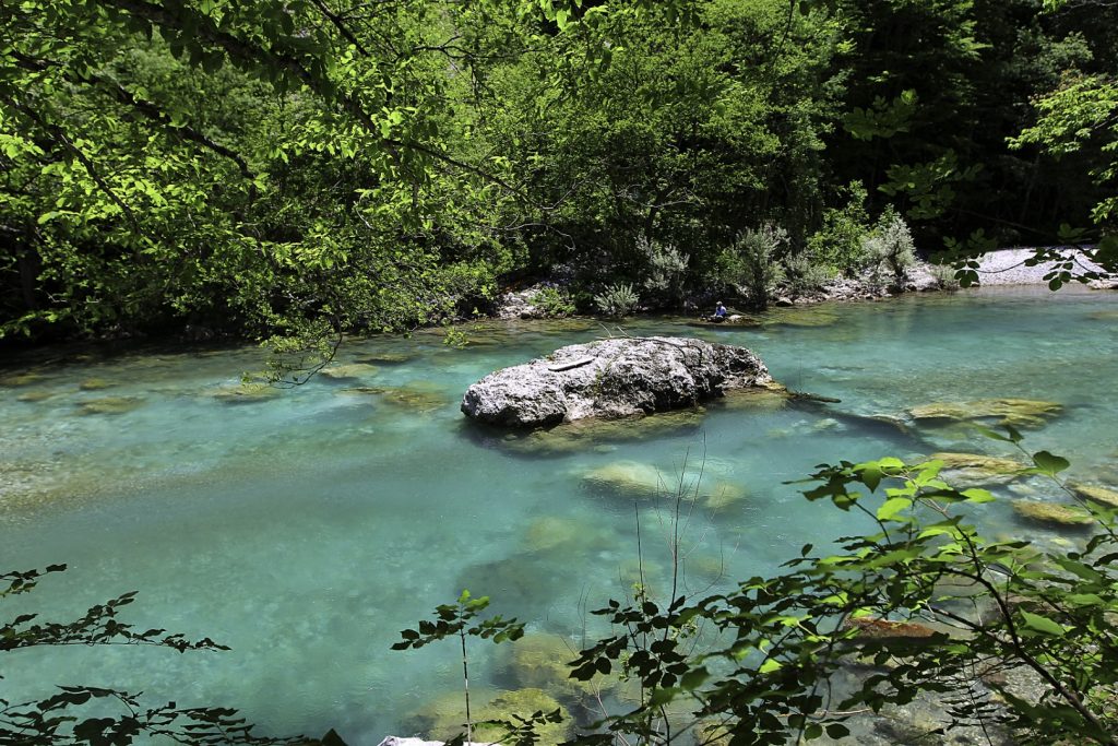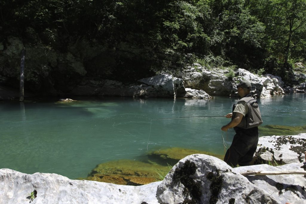 Prvih nekoliko zaustavljanja nije dalo rezultata, iako smo vidjeli lijepe ribe u vodi. Uglavnom krupne lipljane i poduste. Polovinom dana odlučujem sjesti na pramac i uz spuštanje gađati obalno kamenje i sjene Rotex leptirom br. 5. ne bi li uspio uhvatiti koju potočaru ili mladicu. E ovo je bio gušt, drugi veslaju, a ja nesmetano bacam leptir u dubini kanjona jedne od najljepših rijeka na svijetu!