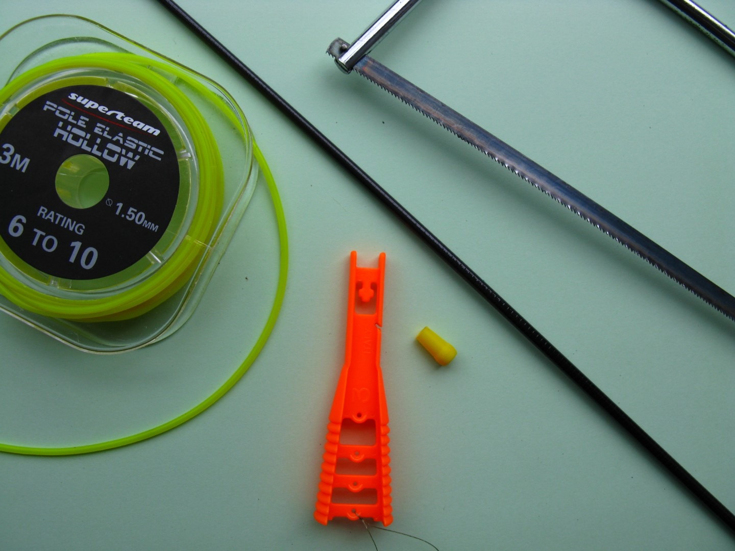 Potrebna vam je nova špica od šteke, pila, brusni papir, PTFE (teflonska plastika) zaštita za vrh štapa, plastični konusni konektor za napinjanje gumice i gumica za šteku željene jačine.