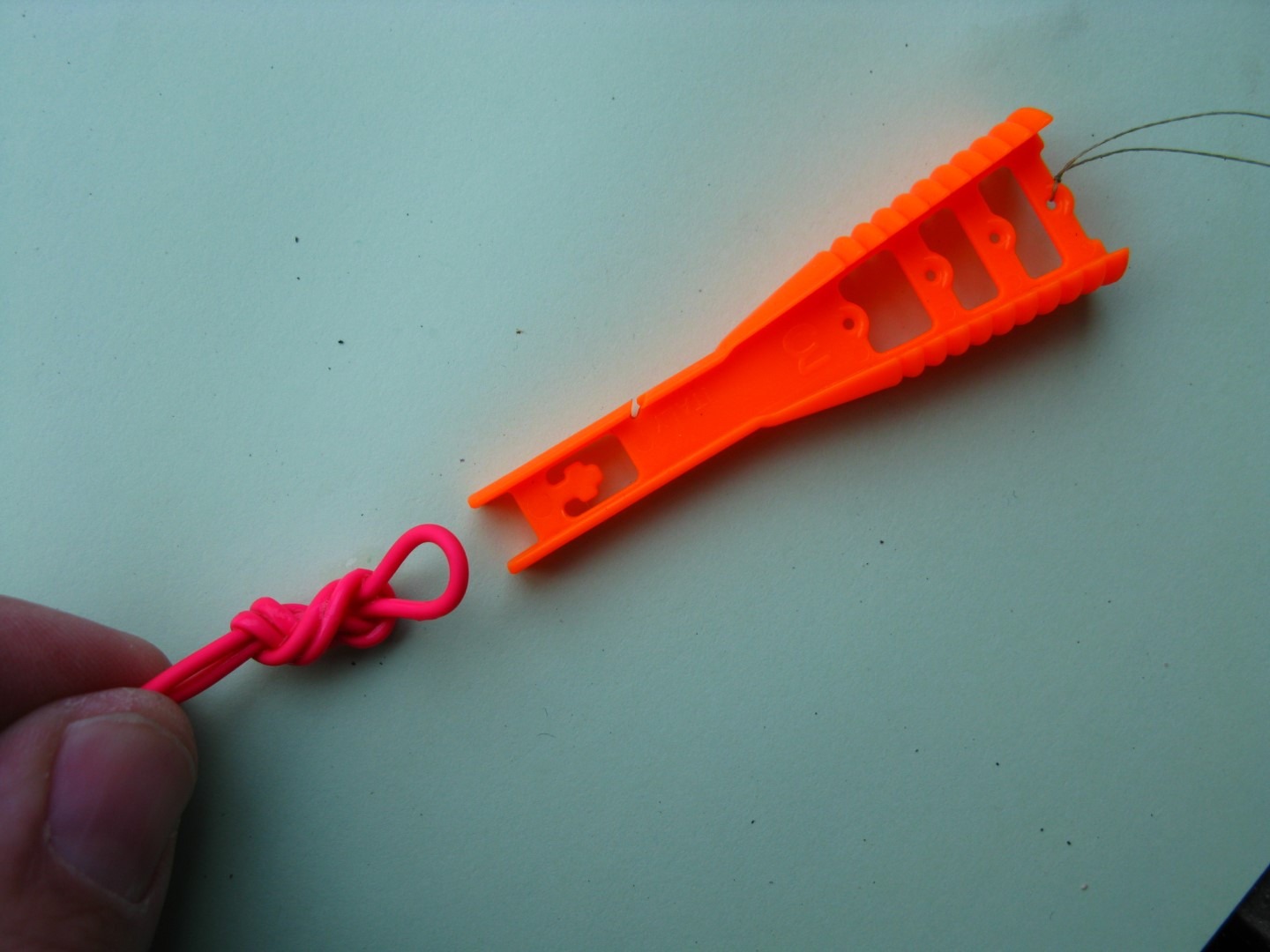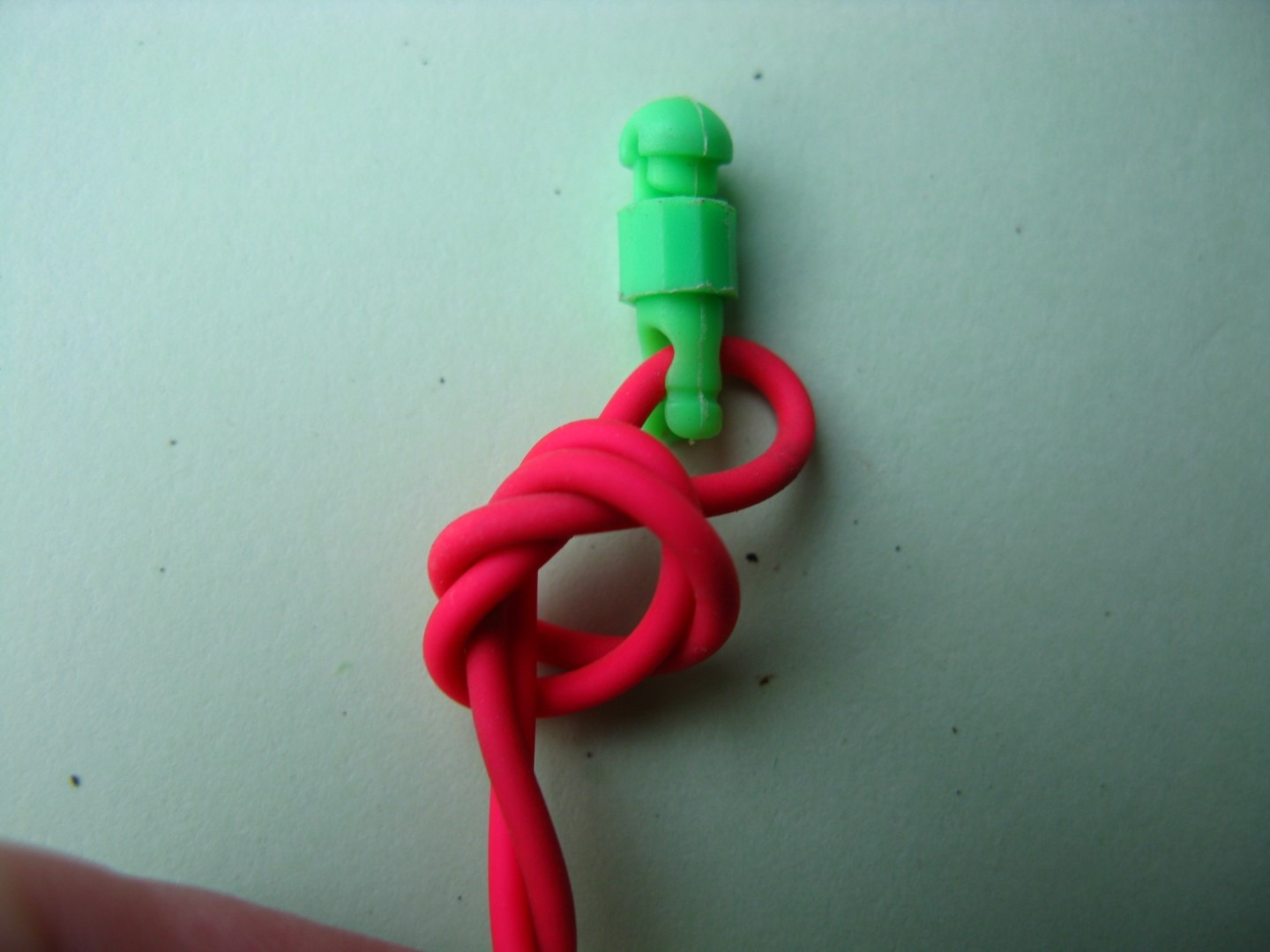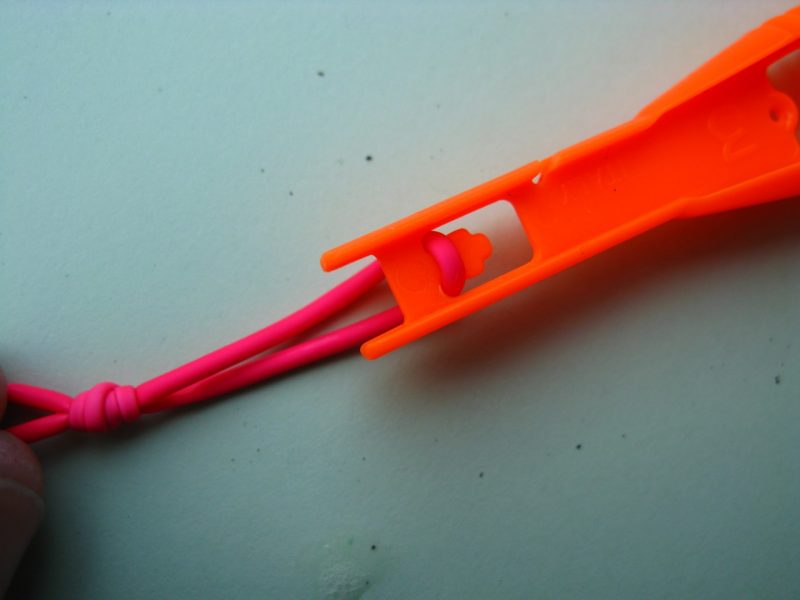 Sad još treba napeti gumicu donjim konusnim konektorom. Napravite dupli čvor preko ruke, naslinite ga i stegnite.