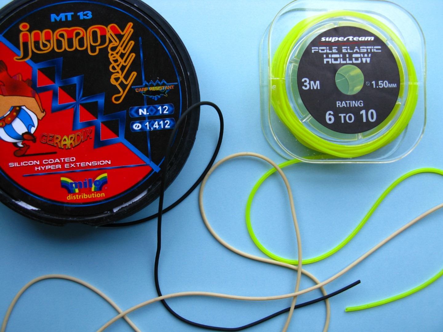 - Silikonske gumice izrađene od nafinijeg latexa (materijala od kojeg se rade i kondomi). One su fantastično mekane i namijenjene izuzetno finom ribolovu najfinijim najlonom i malim udicama. Rastezljivost im je veća i od 800 %. No velika mana im je vrlo kratki vijek trajanja. Doslovno traju vam jedan ribolov.