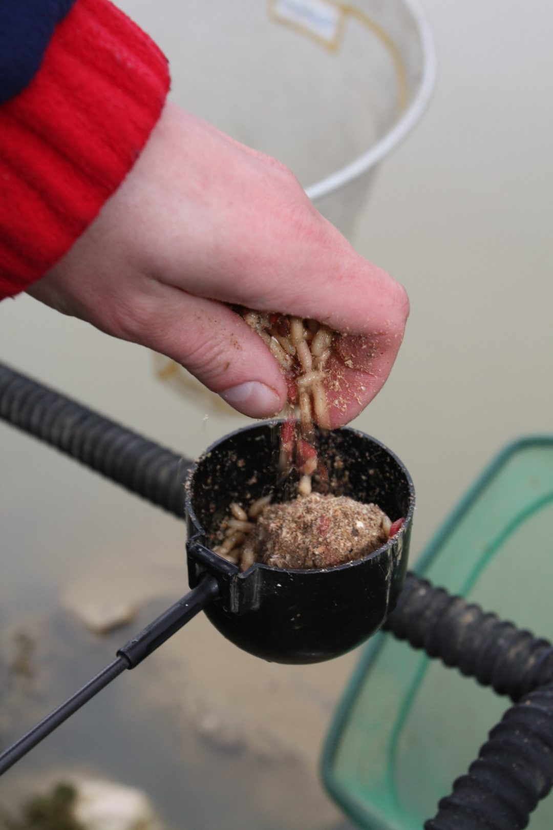 Pažljivo okrenite škrabicu. Ovakvo hranjenje je maksimalno precizno. Ako zapamtite orijentir na drugoj obali moguće je plovak sa mamcem držati točno na hrani.