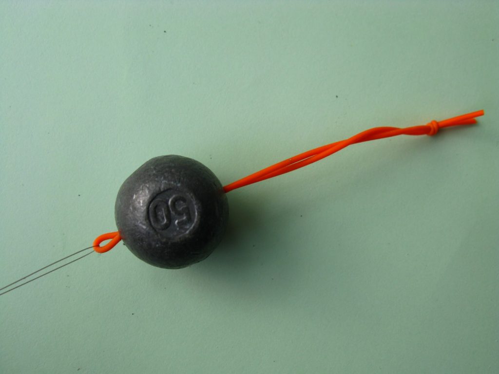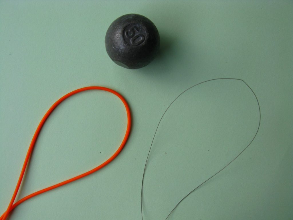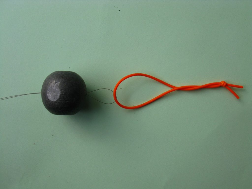 Provucite gumicu kroz olovo i sonda je gotova. Pri upotrebi uducu zakvačite kroz ovu manju omču i nategnite gumicu za čvor sa druge strane – ne brinite neće skliznuti.