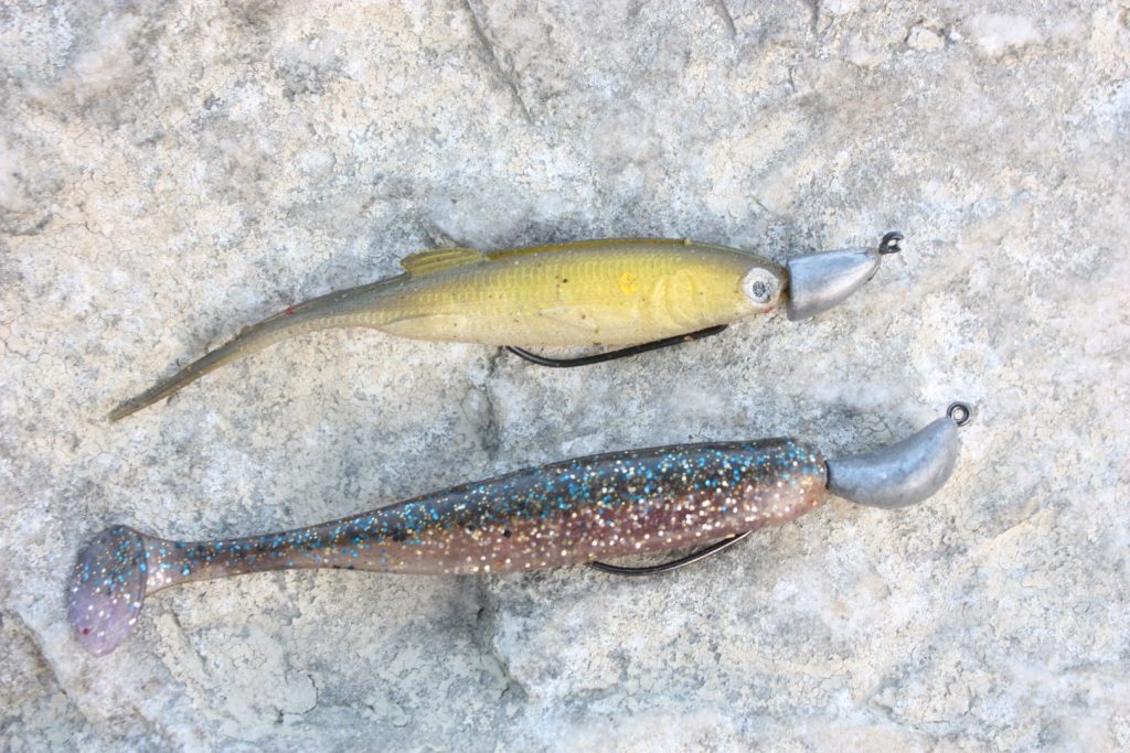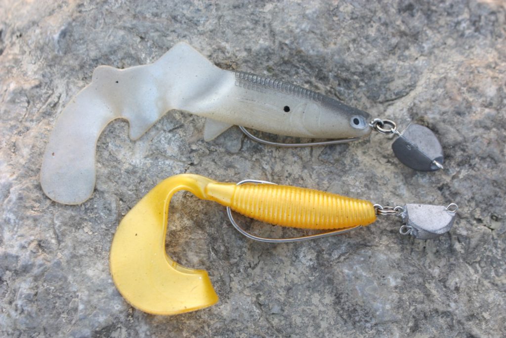Pod ovim smatram montaže raznih shadova, twistera, no action (tzv. lasti) na jig glave raznih oblika (okrugle, erie, shad, sanjke i sl.), ovo su najčešće korištene varalice i ako ih montirate na odgovarajuće teške glave možete pretraživati sve slojeve, protekle godine su valjda zbog cijene olova jig glave znatno poskupile pa se sada ako često lovite (i gubite varalice) svakako isplati kupiti svoje kalupe, udice i lijevati jigove sam (ili par prijatelja zajedno). Isprobavajte razne oblike i težine jig glava, a ponekad će vam korištenje onih obojanih i jarke boje donijeti griz više pogotovo ako svi ostali koriste one neobojane.