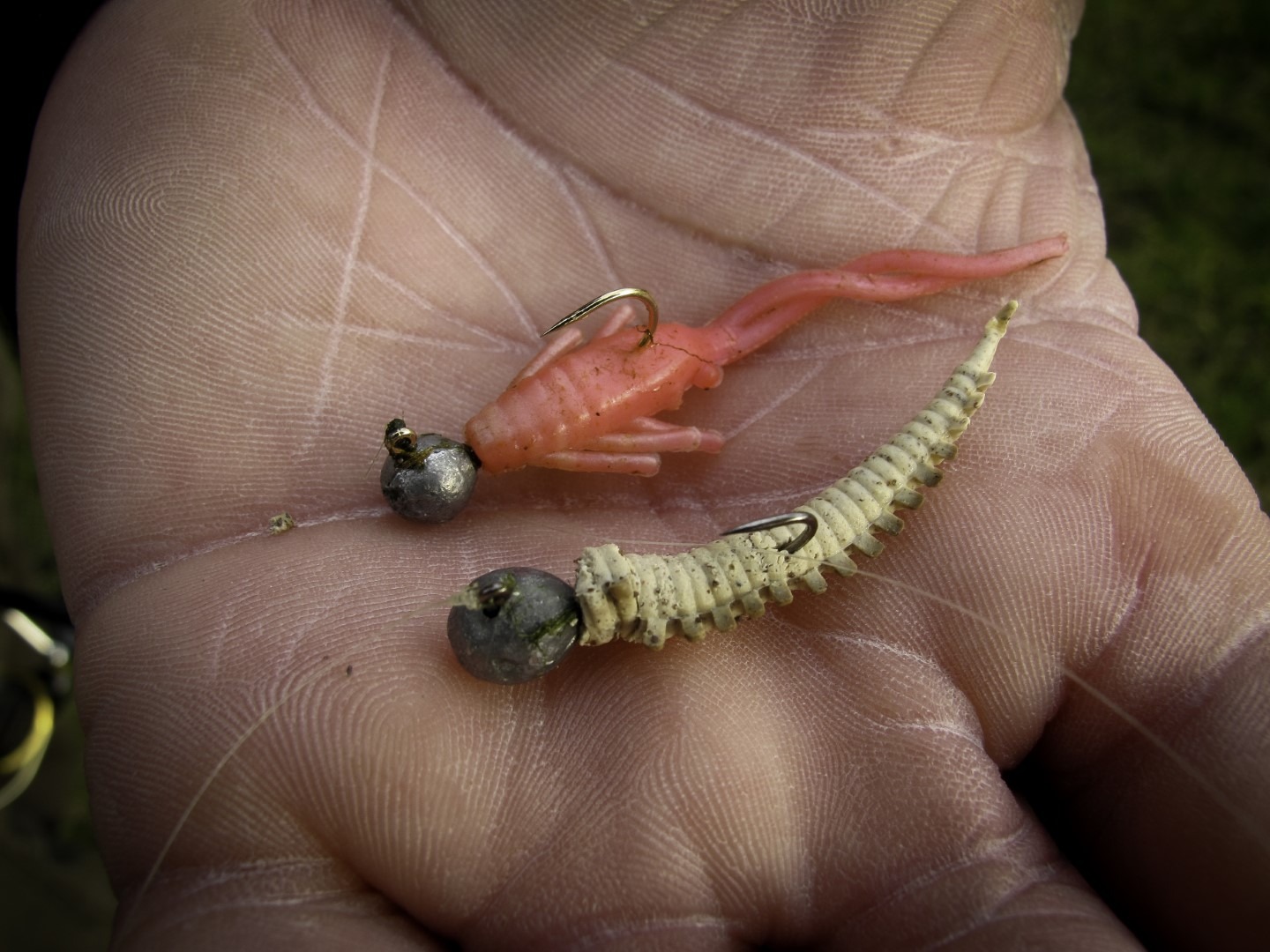 Sve popularne Nimfe, Sandworm-ovi, Night crawleri ili Savage gear 3D Manic Shrimp-ovi na Ultegrinim jig glavama od 0,2-3 grama odlivenim na udicama veličine 4 ili 6 rade vrhunski posao. Iskreno, nisam potpuno siguran šta ti komadi gume u kričavim bojama koje ne liče na ništa prirodno u vodi predstavljaju pastrvi, ali ih one uzimaju bez pardona kada se savršeno prezentiraju. Prezentacija prirodnog drifta mamca što bliže ribi je daleko najvažniji moment u ovom ribolovu! Zabačaj mora biti dovoljno uzvodno da naš mamac stigne potonuti u ravninu ribe metar ili dva uzvodno nakon čega je treba laganim trzajevima održavati u „zraku“ sve dok ne dođe na 30-40 cm ispred ribe. Tada nastupa ključni trenutak kada treba opustiti strunu i pustiti da voda posve prirodno ponese mamac po mogućnosti direktno u ribu, koja ga u tom slučaju uzima bez razmišljanja. Zvuči jednostavno, zar ne? Međutim često u brzom toku i namreškanoj vodi nije niti malo jednostavno pratiti mamac, čak i u vidljivim bojama kao što su bijela ili roza!