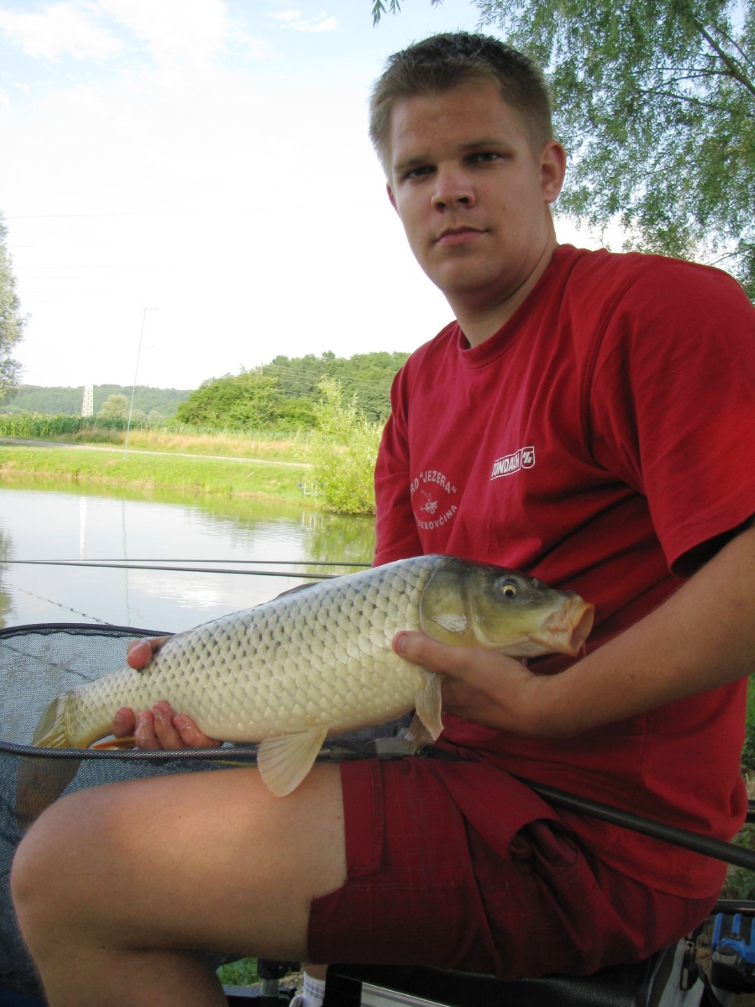 Moj domaćin na jezeru je bio Ivica Grabušić- Ifi, natjecatelj ŠRD „Žabec“ Lug Zabočki, iz društva koje gospodari jezerom. Pridružio nam se i moj klupski kolega Vanja Dominko. Kako smo se dogovorili, na jezeru smo se sastali oko tri popodne. U prvi tren, kako sam se približavao jezeru, bio sam pomalo razočaran njegovom veličinom – 150 metara dužine i od 15 do 25 metara širine. Proporcije jezera su mi se činile pomalo skromnima. Kad sam došao do same obale, shvatio sam da sve vrvi do ribe koja je svoju prisutnost pokazivala kretanjem ispod same površine, izbacivanjem i mnoštvom mjehurića koji su izlazili na sve strane. Istog trena sam požalio što sam sa sobom ponio samo fotoaparat. Primijetio sam da je i Vanja nestrpljiv te da jedva čeka da počne s ribolovom. Za razliku od nas Ivica je bio mnogo smireniji i sve je sa smiješkom promatrao. Moram priznati da već dugo nisam vidio nekog da tako brzo raspremi šteku i složi linije kao što je to Vanja u tom trenutku učinio. Očito su loši ulovi na zadnjih nekoliko natjecanja učinili svoje i u njemu probudili želju za jednim izdašnim ribolovom. Bar smo se tome u tom trenutku svi nadali…
